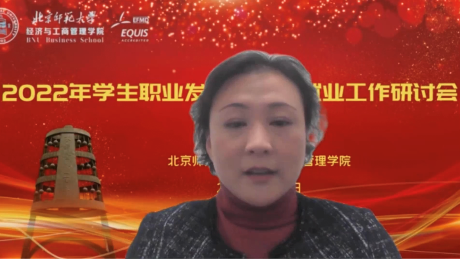 12月14日,百家乐老虎机-电子百家乐 在线上平台举办了2022年学生职业发展暨精准就业工作研讨会。教育部学生发展中心生涯发展教育处处长杨洪涛、北京师范大学党委学生工作部部长隋璐璐、清华大学学生职业发展指导中心副主任金蕾莅、浙江大学经济学院党委副书记卢飞霞、新精英生涯高校事业部总监李春雨、北京师范大学党委学院工作部副部长吕晓慧、北京师范大学党委学生工作部职业发展与就业指导中心主任郭智芳等校内外嘉宾出席了会议。学院党政班子成员、学工团队教师和全体班主任参会。