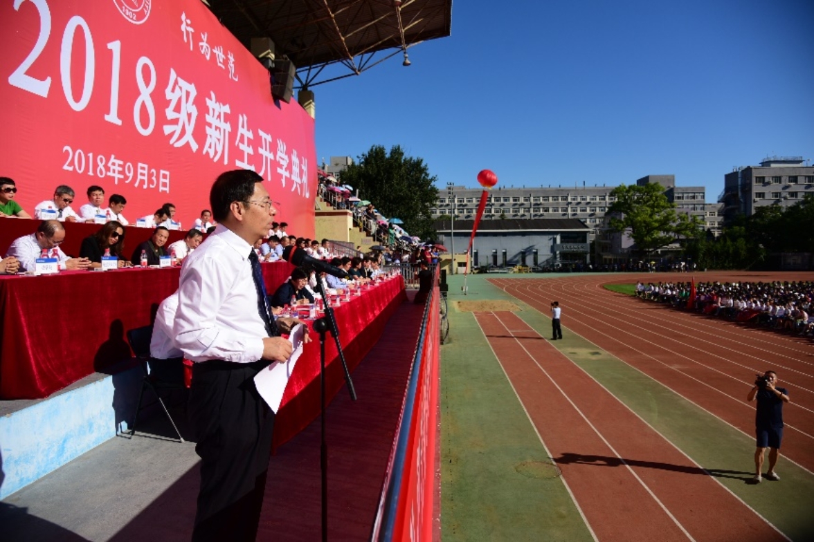 图6赵老师作为教师代表在全校2018级新生开学典礼上发言