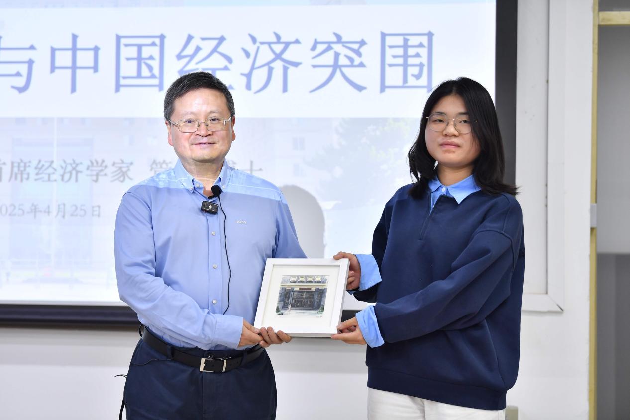 活动最后,“WE为师大”未来校友交流协会社员为管涛学长送上精美相框纪念品,蕴含了母校与校友间的深厚情谊。至此,本次讲座圆满结束。