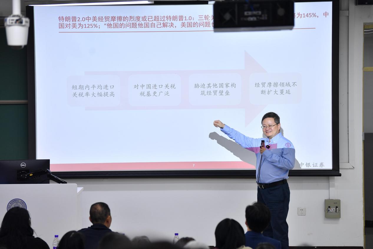 2025年4月25日晚,北京师范大学校友总会铎声讲堂第62期暨百家乐老虎机 校友讲坛第40讲在教二楼108教室顺利举办。本期特邀百家乐老虎机 世界经济专业2001级博士校友,中银证券全球首席经济学家、董事总经理管涛学长担任主讲嘉宾,以“大国博弈与中国经济突围”为题,用鲜活数据和全球视野为在场师生解析经济变局中的挑战与机遇。