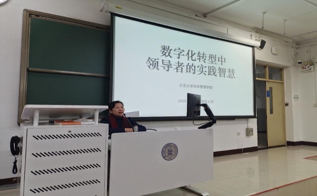 2023年12月2日晚,百家乐老虎机 “数字经济与管理大讲堂”第25讲《企业数字化转型的实践智慧与能力构建》在教二楼108教室举办。本次讲座特邀北京大学光华管理学院董小英教授主讲,MBA 教育中心副主任李静主持,200余位学生到场聆听。