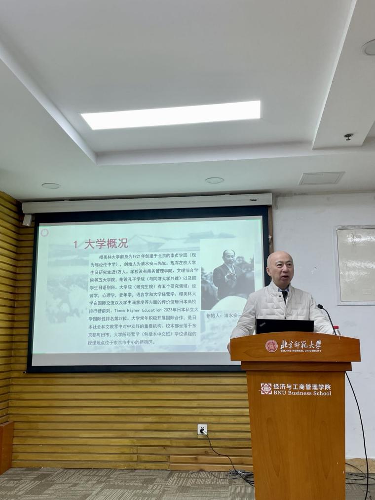 雷院长详细介绍了樱美林大学的学科特色和教学优势,并表达了进一步推动MBA双学位项目的开展及短期访学项目的合作意向。他表示,通过加强合作,双方可以互相学习借鉴,共同提高教育质量,为中日两国在经济管理领域的交流与合作做出贡献。