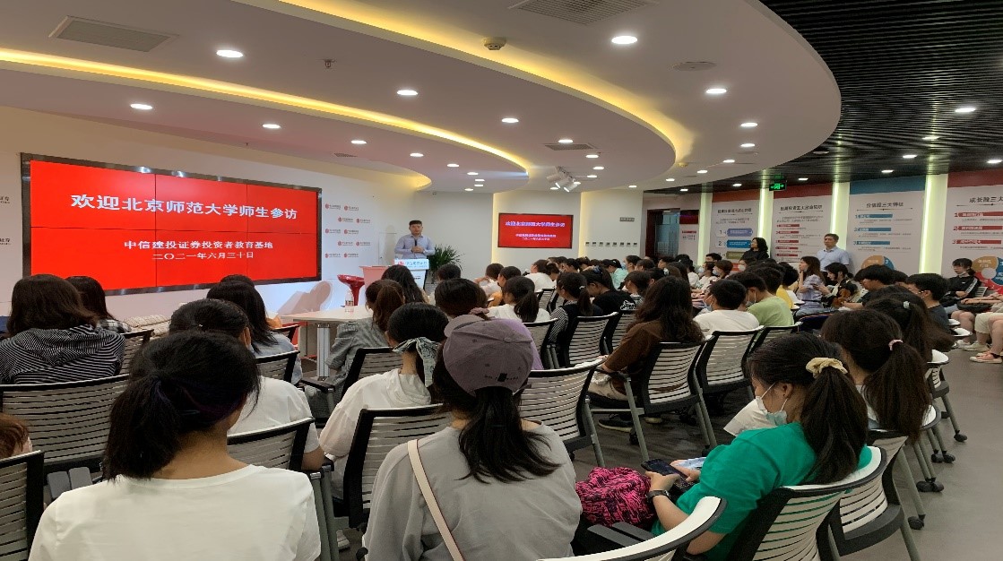 为让金融专业教育更好的与社会实践相结合,让学生更直观的了解金融业界的前沿动态,2021年6月30日,在金融系主任胡海峰老师、金融科技项目主任江婕老师、2019级金融班主任陈夙老师和2020级金融科技班主任兰茹佳老师的带领下,百家乐老虎机 2019级金融班、2020级金融班和2020级金融科技班合计约80位同学来到中信建投证券投资者教育基地——京信学堂——参观学习。