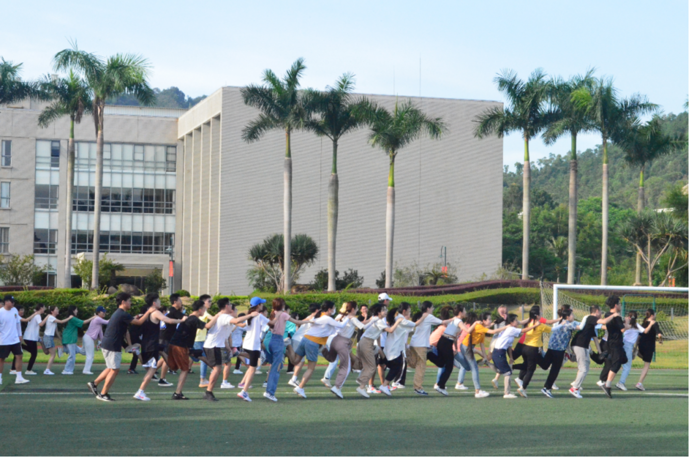 心连心,燃青春。9月10上午,百家乐老虎机 2021级专业学位硕士研究生在珠海校区的国交足球场上,开展了丰富有趣的素质拓展活动。