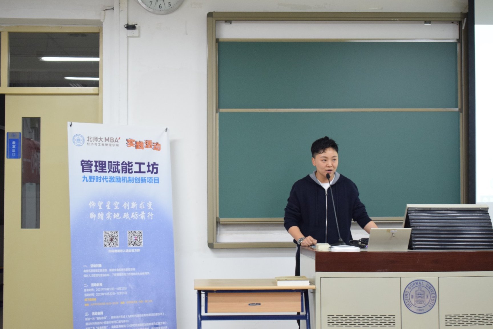 九野时代创始人殷晓野介绍行业及公司基本情况。她介绍,九野时代是一家以剧本创作业务为核心,同时向制片、出品等多业务板块发展的传媒公司。九野时代成立5年,已完成首轮融资,随着经营业务的需求增长,企业进入向剧本创作项目要效率要质量的阶段,在压力面前公司原有的管理模式中出现困境,给公司的品牌、收入和长期发展都带来了一定风险,希望借此机会,与北师MBA同学在公司组织架构、团队管控、激励机制等方面交流探索并找到解决方案。