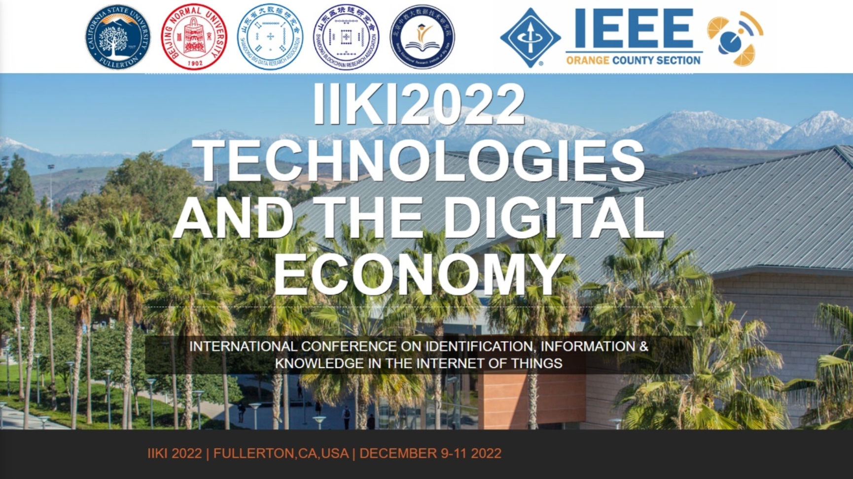 12月9日至11日,由加州州立大学富尔顿分校(California State University, Fullerton)、山东省大数据研究会、山东大学联合主办,北京师范大学、北京中教大数据技术研究院和山东区块链研究会协办的第十一届物联网标识、信息与知识国际会议(IIKI2022)以线上会议的模式顺利举行。会议全程由山东省大数据研究会官方微信视频号“数据山东”同步直播。会议主题重点突出信息技术与数字经济两个版块,其中技术板块延续历届会议的相关分会,数字经济版块凸显数字经济与金融科技的主题,设立6个与之相关的分会。