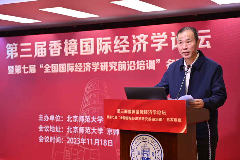 2023年11月18日,第三届香樟国际经济学论坛暨第七届“全国国际经济学研究前沿培训”名家讲座在北京师范大学成功举办。本次活动邀请了全国著名经济学家就经济发展、国际贸易、国际金融等领域的学术前沿、重大现实问题进行讲授。校内外专家学者、师生共120余人参加了会议。本次会议包括开幕式致辞、名家讲坛和分论坛三大环节。