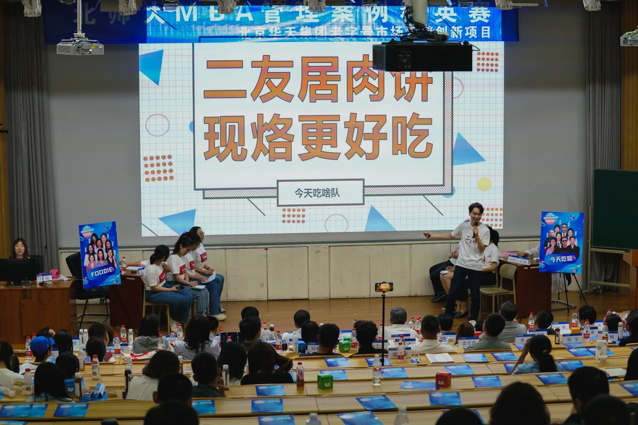 本届北师大经管MBA管理案例精英赛全程以北京华天集团为实战案例对象,针对北京华天集团所属庆丰包子铺、二友居、同和居三家老字号餐饮品牌提供相应的市场营销解决方案,该大赛自2024年3月25日启动以来,共计13个小组、近120余名同学报名参赛。所有的参赛队伍在分析品牌现状的基础上,融合基础理论、调研结果和营销数据,设计符合各品牌实际的市场营销方案,用创新方法讲好老字号故事,让老字号焕发新生机。在5月19日通过激烈的复赛角逐后,共10支队伍进入当晚决赛。
