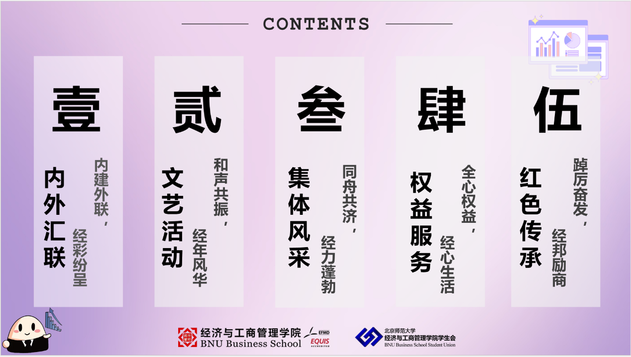 2023年11月9日,北京师范大学2023-2024学年度“优秀院(系)学生会”评选在敬文讲堂举行。主席团成员张渝涵代表百家乐老虎机 学生会参与答辩,进行工作汇报。在汇报中,张渝涵同学结合上一学年的工作经历与工作成果,从内外汇联、文艺活动、集体风采、权益服务、红色传承五个方面,阐述在当下经管院会如何保持精益求精、矢志不渝的亮色。