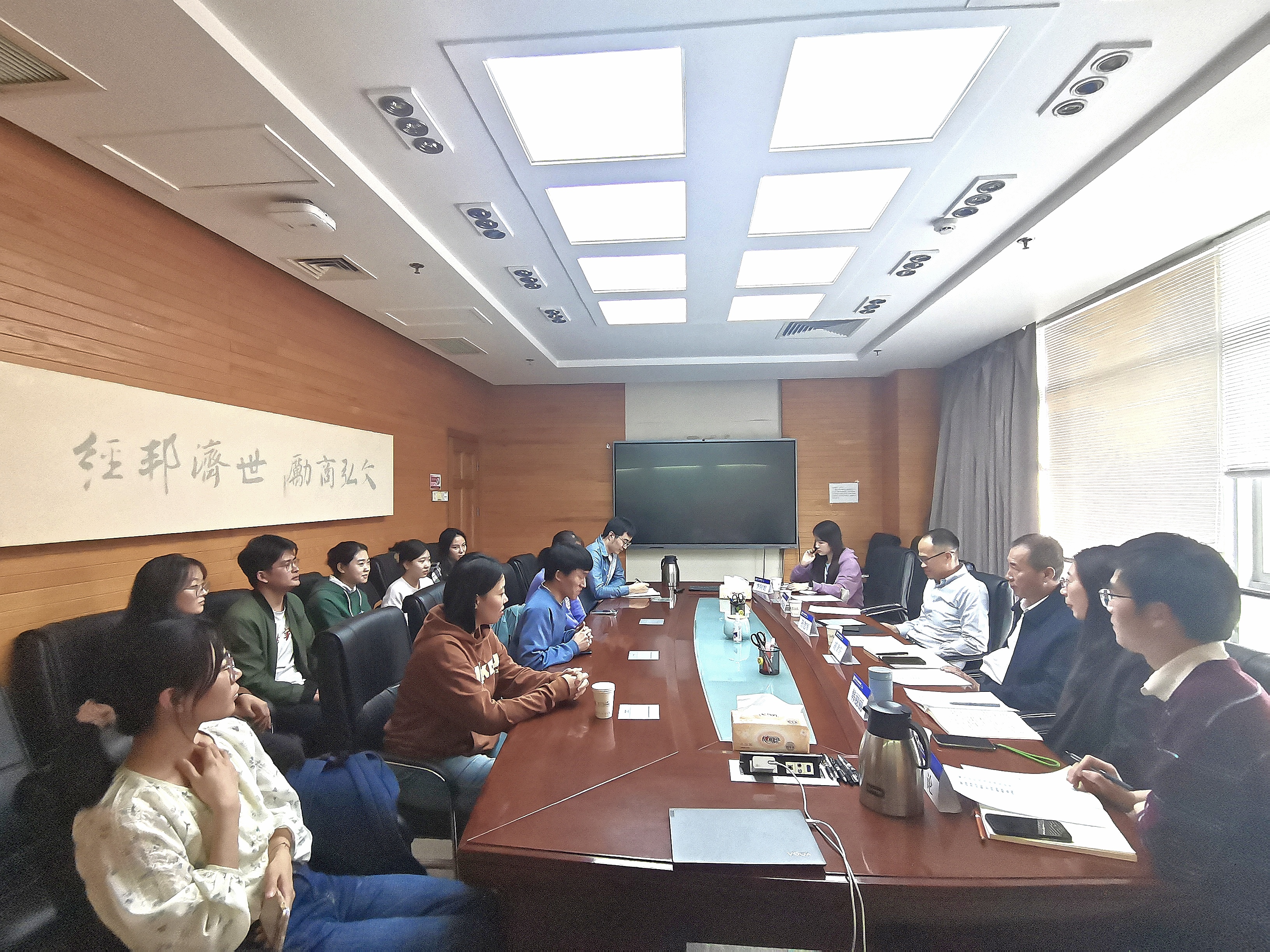 2024年4月16日下午,百家乐老虎机-电子百家乐 在后主楼1610会议室召开毕业生代表座谈会暨就业促进会。学院院长戚聿东、党委书记孙志军、团委书记常欣扬、双肩挑辅导员李论、校友办公室主管李阿妮出席会议,会议由副书记韩丽丽主持。