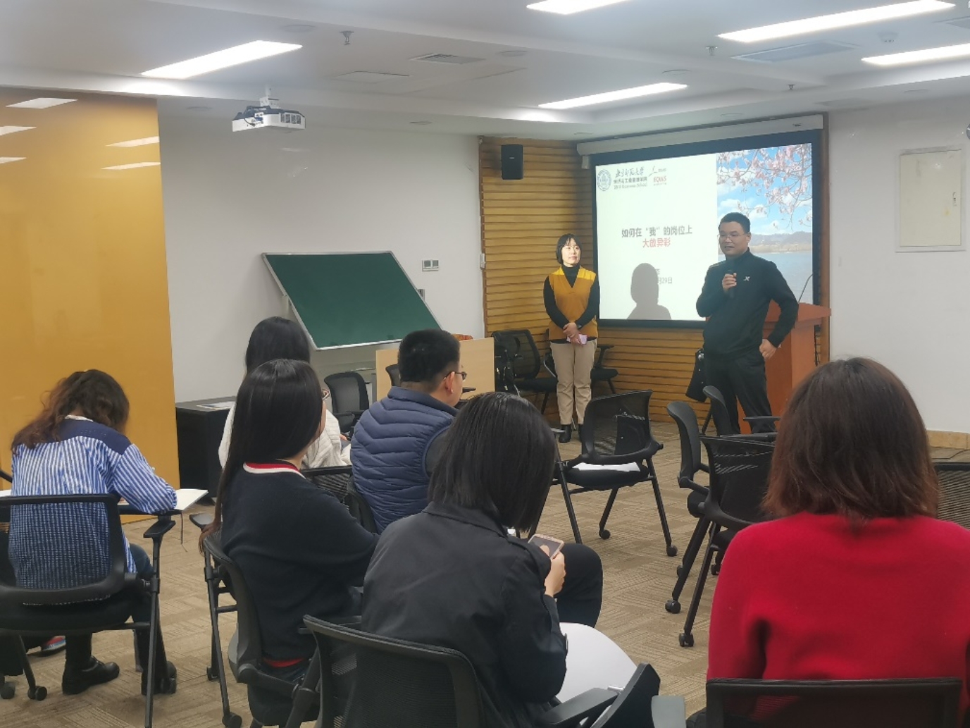 为持续提升学院行政教师的专业能力与执行力,本学期学院将陆续组织“学习型专业化行政教师能力提升系列讲座”。3月29日上午,主题为“如何在‘我’的岗位上大放异彩”的开场讲座在京师大厦9406会议室顺利举办。本次活动有20余位学院行政教师参加,邀请到北京师范大学出版集团党委副书记、北师大百家乐老虎机 校友江燕老师主讲,由学院党委副书记葛玉良老师主持。